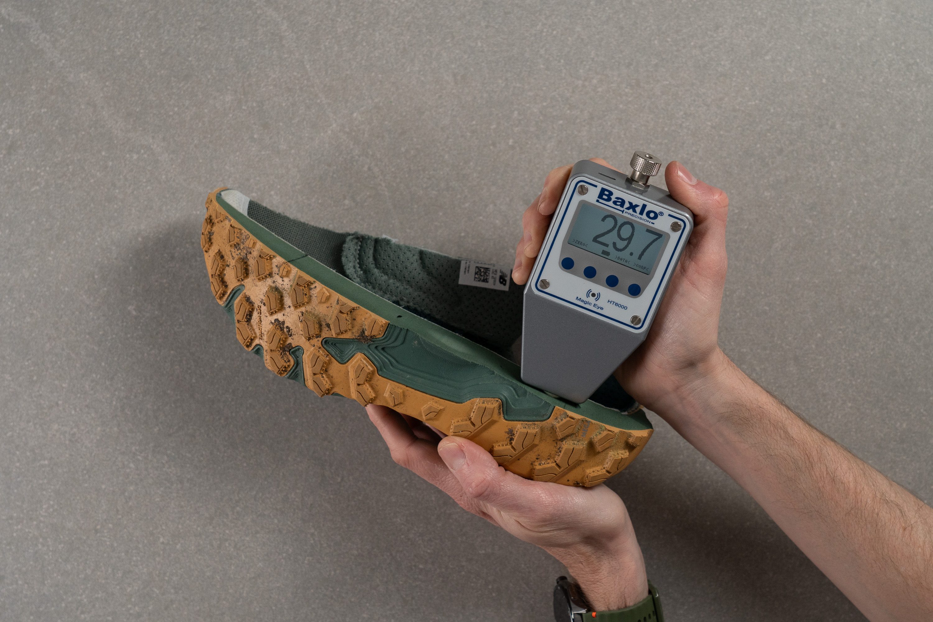 Respetamos el estándar ASTM F1976-13 al analizar la absorción de impactos y el retorno de energía de las zapatillas de trail running