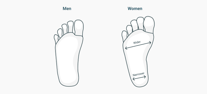 These letters are different because men's feet are different from women's feet. Women’s heels tend to be narrower and forefoot wider than men’s. This is a general rule, and, of course, exceptions exist.