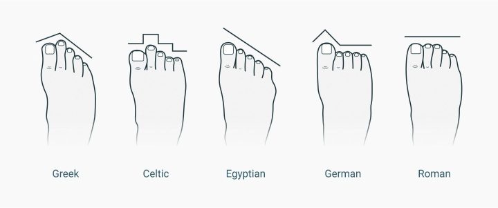 Hiking shoes that are narrower at the big toe would obviously work better for the Greek type than any other toebox shape. Just like the Roman and the German type would most likely need extra wide shoes/toeboxes.