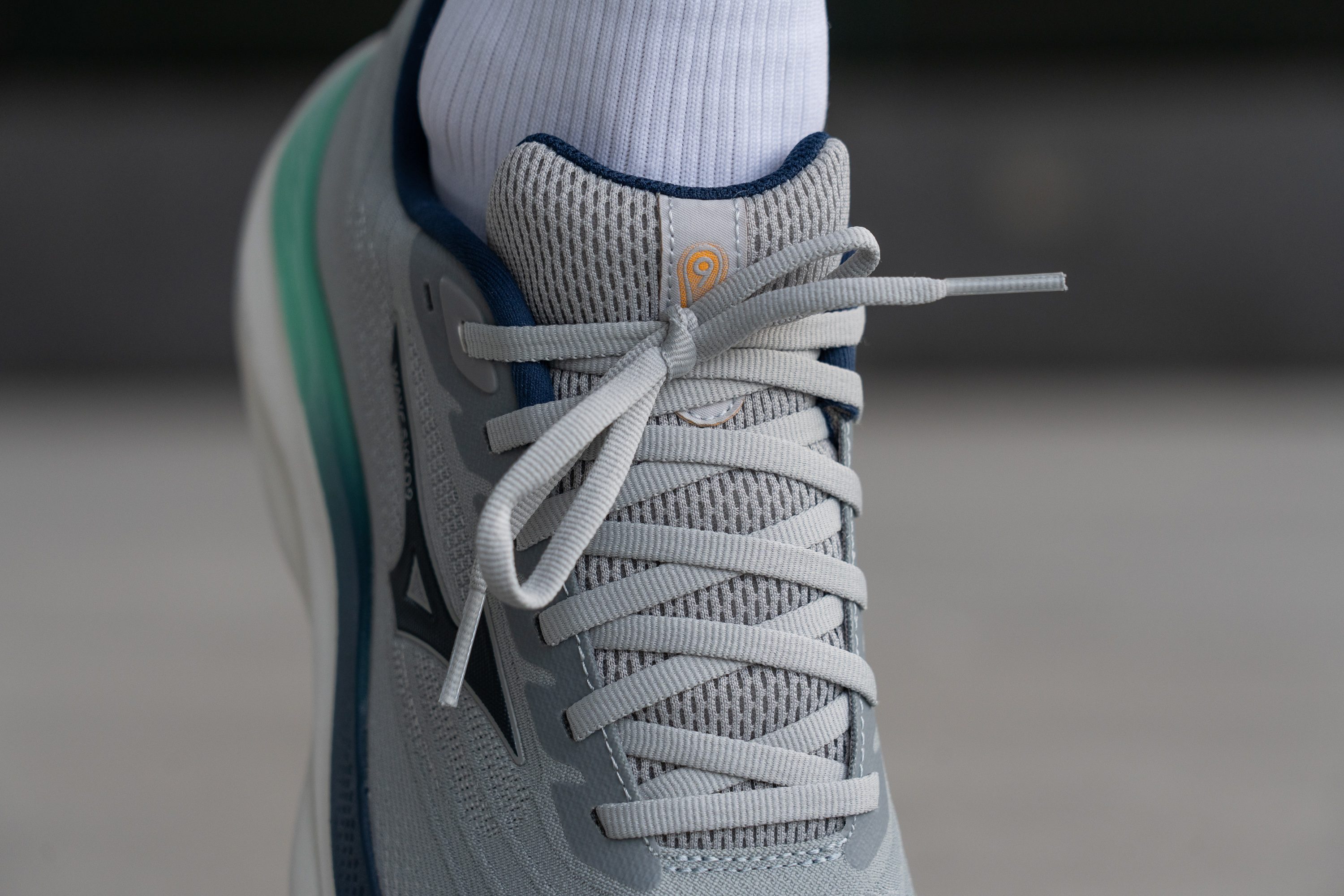 We can tell that Mizuno kept the structured upper around the midfoot and heel and invested in a more perforated knit for the toebox.