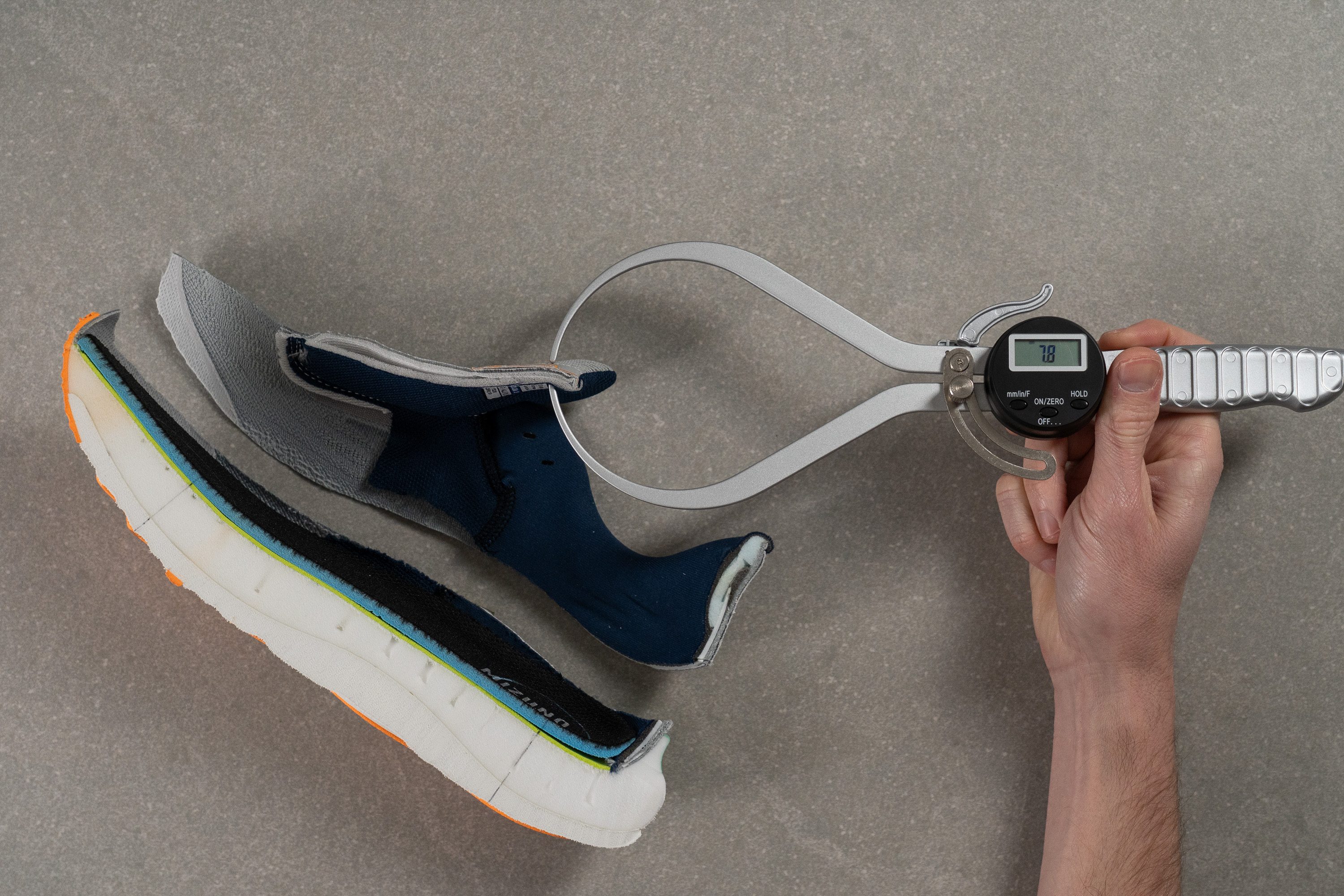 Measuring the mold in the big toe area, our caliper showed only 70.4 mm, which is almost 5 mm smaller than the Wave Sky 8. If you are looking to buy this shoe, be wary that the toe box may not be as spacious as you think, or opt for the wide version for extra space.