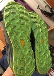 - The outsole still uses Vibram, but not incorporates larger and more numerous opposite facing lugs in the shoe’s perimeter. Right in the middle of the outsole that spans the heel to the forefoot are 4mm multi-directional lugs that really deliver the necessary grip on a variety of trail surfaces.