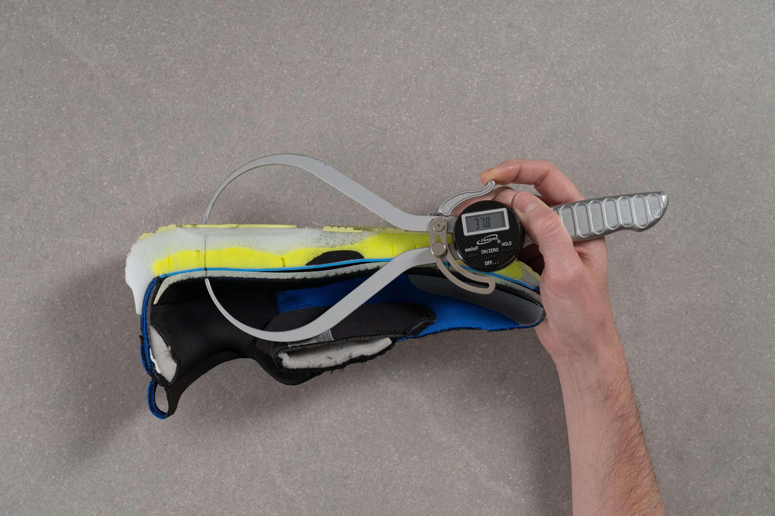 We found a heel stack of 30-40 mm to be optimal for senior wearers, as it keeps the foot slightly off the ground while still providing enough underfoot support and cushioning.