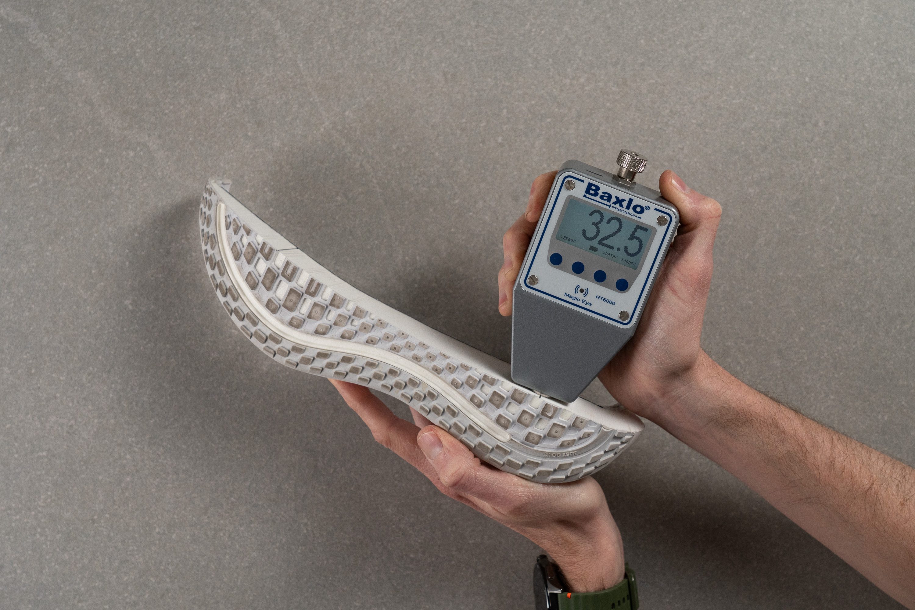 But, as with any other lab test that we do, the traction test is also standardised, which means each running shoe is treated the same. We actually follow SATRA TM144 testing methodology and test the traction in wet conditions. The result is a dynamic coefficient of friction and the higher it is, the better! Ideally, shoes should have a 0.45 or higher CoF to play it safe in wet weather. However, traction above 0.25 is solid for dry surfaces.