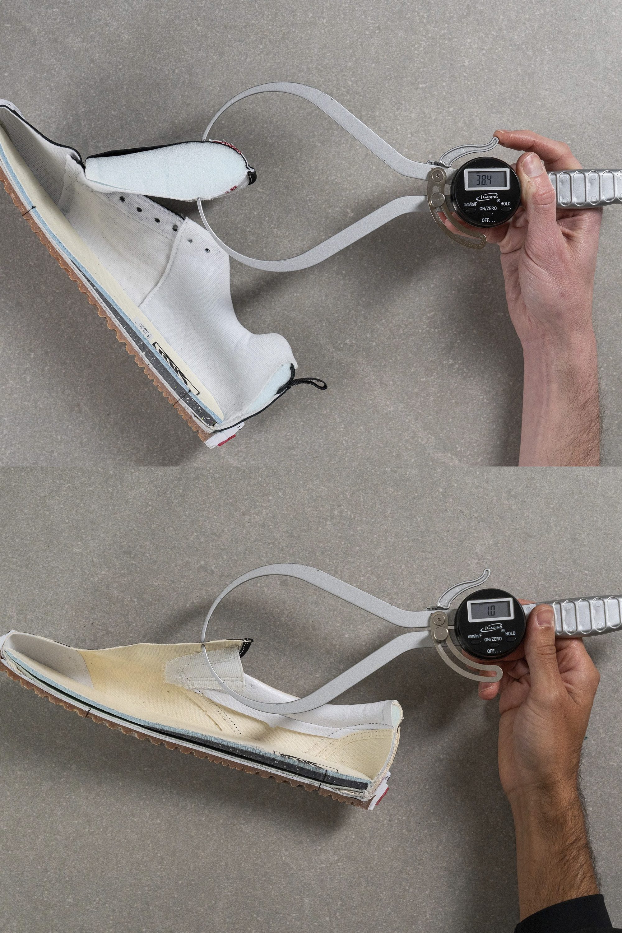 For some skaters, the trickiest part is nailing the toebox width. To put an end to this, we started measuring the exact width of the toebox by pouring a gel into it, freezing it, and then measuring the width of the gel mould.
