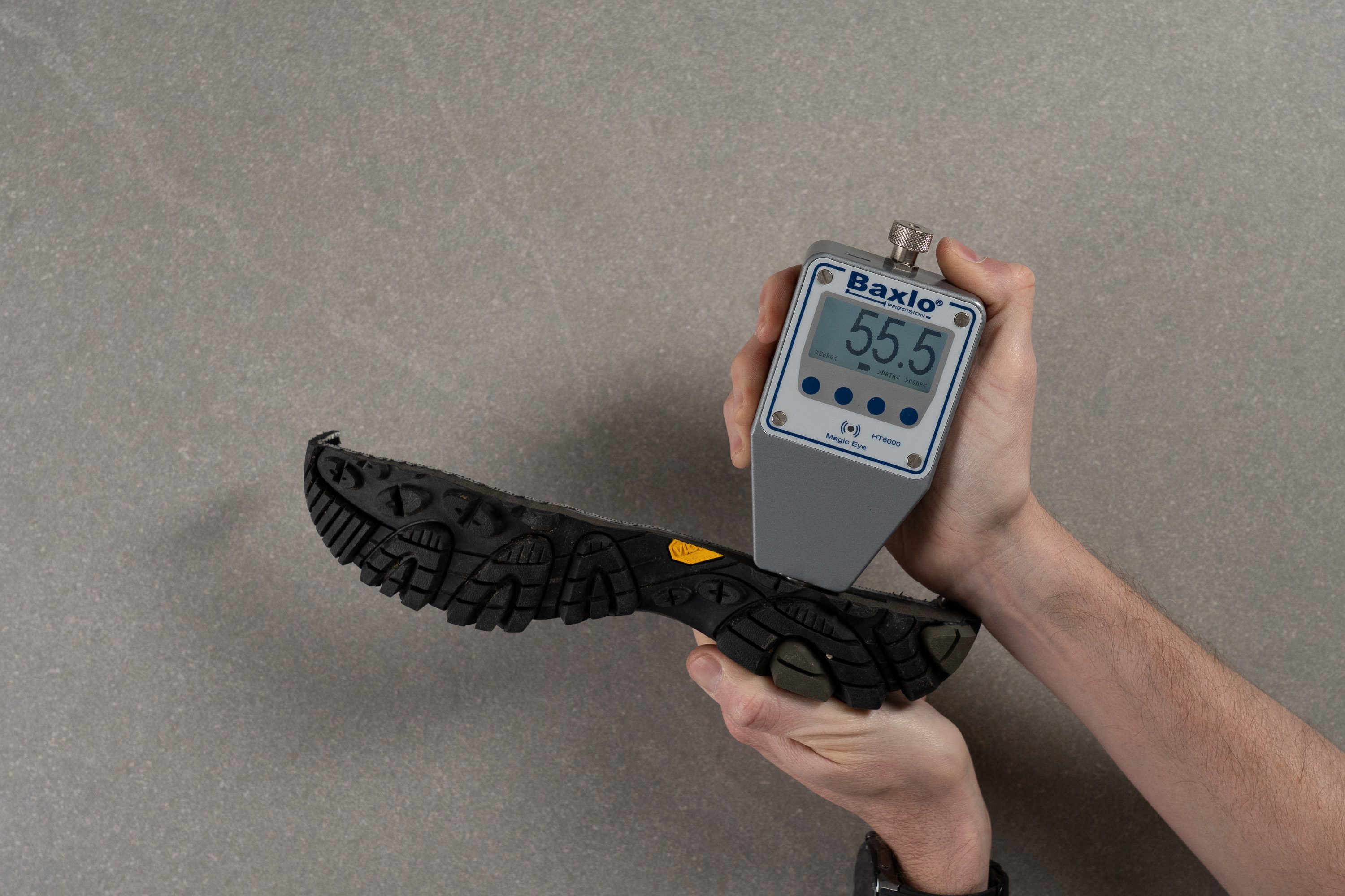 Deeper lugs simply bite into the ground better, especially when it’s wet: be it snow, mud, or slush. The deeper the lugs, the better the traction. We recommend 4 mm and above for soft and loose wet ground and up to 4 mm for hard, flat surfaces like rocks. In the lab, we measure the depth of the lugs with a calliper.