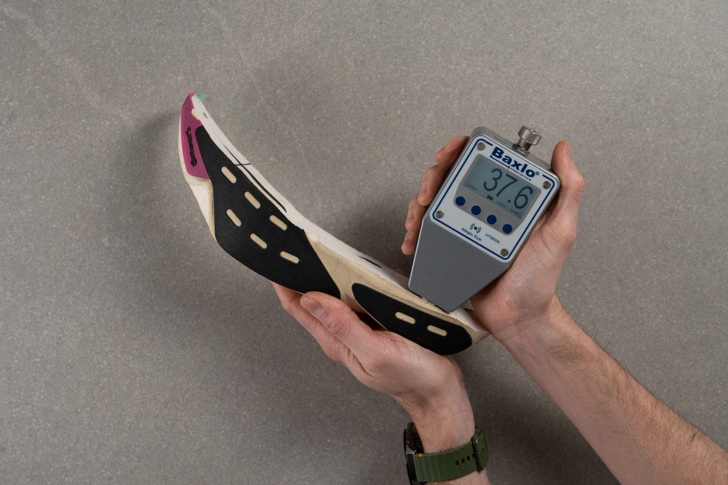 There are multiple ways to measure energy return in running shoes, and since there’s no standardised method across the industry, each company—including ours—chooses based on its preferences, needs or budget constraints.